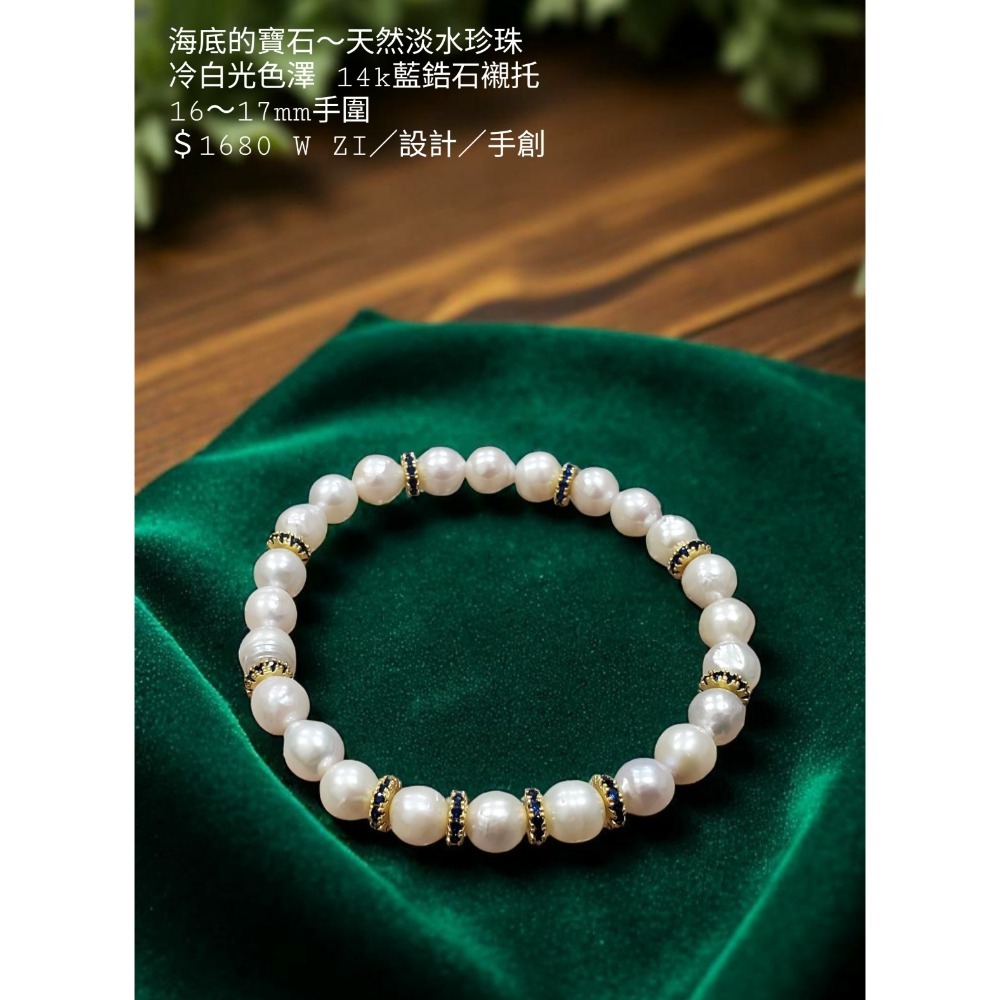 天然淡水珍珠 搭配14k金藍鋯石鑲嵌隔珠 光感強潤 巴洛克風格 突顯出低調輕奢氣質