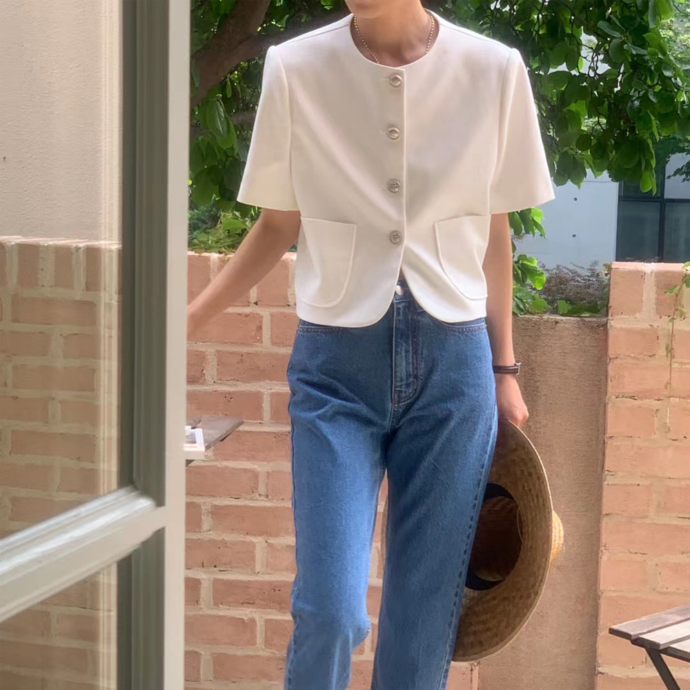 韓國選物|摩登女子短袖粗花呢西裝外套 (黑/白色)