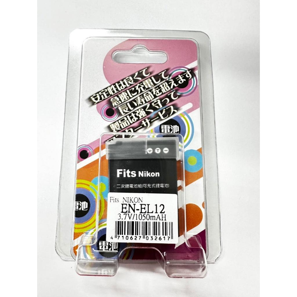 Nikon EN-EL12 ENEL12電池200元 3.7V 1050MAH   Nikon EN-EL12 ENEL12充電器180元  適用  S710 / S610 / S610C / S640 / S70 / S1000pj / S620 / S630 / S8000 / S6000 / S8100 / S1000 / P300 / S9100 / P310 / S9300 / S9200 / AW100 / S6150 / A900 (出國免煩惱  100-240V  會自動變壓.斷電  使用簡單 超方便喔)  「產品特色 」 ●台灣認證 BSMI R39230  商檢認證合格 請安心購買 ●電池均投保台壽保產物保險2000萬產品責任險 保險字號1840-20-PR0000013 ●保證全新電池---二次鋰電池組(可充式鋰電池)。  採用原裝進口電池芯,日制IC保護電路, 所有規格均依照原廠的尺寸,品質均可達到原廠電池要求。符合原廠標準。   ●全新保固90天,品質有保證。    「貼心提醒 」 ●電池出廠前已部分充電,但僅供檢測使用 ,建議使用前將電池充飽後使用 。    ●電池金屬端子若因長期使用,可能會有氧化現象造成接觸不良,可用橡皮擦將其氧化部分擦拭  。  ●電池使用後請充飽再行存放,避免電池因長期未使用自我放電,造成電壓過低導致無法充電或造成電池損壞 。  ●電池不使用時,約3個月取出充電保持電池的活性,新電池需經使用3~5次以上充放電方能達到最高效能,請使用原廠充電器或合格專用充電器。 ●請勿置放於攝氏60度C以上(華式140度F以上)之環境,請勿將電池正負極接觸以避免短路,避免電池金屬端子與外界導電物接觸所產生之危險,應將暫不使用之電池用塑膠袋或絕緣袋將其包裹。 ●請遠離火源.潮濕場所,以防爆炸.短路,請勿自行拆解或改裝電池,易導致電池短路發生危險,請勿掉落或敲擊電池,易導致電池內部短路或斷路發生危險。   「充電時間」   2-4小時(實際時間由產品容量而定)  計算方法:將電池容量除以600可以算出大約時間(小時)  ●本商品在非人為因素下,自購買日起7天保固 鑑賞期並非試用期,所以,您所退回的商品必須是全新的狀態、而且完整包裝(含商品本體、配件、 包裝 的完整性) ★本產品皆以實品拍攝商品,但因拍攝時受環境、光線影響,顏色表現可能會與實物有稍許誤差,出貨以實際商品為準。 ★平日賣場每天都會出貨,下午4點前完成的訂單,賣場會安排於當天依訂單順序寄出,例週六日及國定假日公休停止出貨。 送貨及保固說明 .寄送時間:完成付款後 7 個工作天內送達(不含週六日及國定假日) .送貨方式:透過郵局或宅配送達。 .送貨範圍:限台灣地區。 .售後服務:若產品本身瑕疵或運送過程導致新品瑕疵,到貨7日內可更換新品。  #電池 #座充 #充電器 #USB