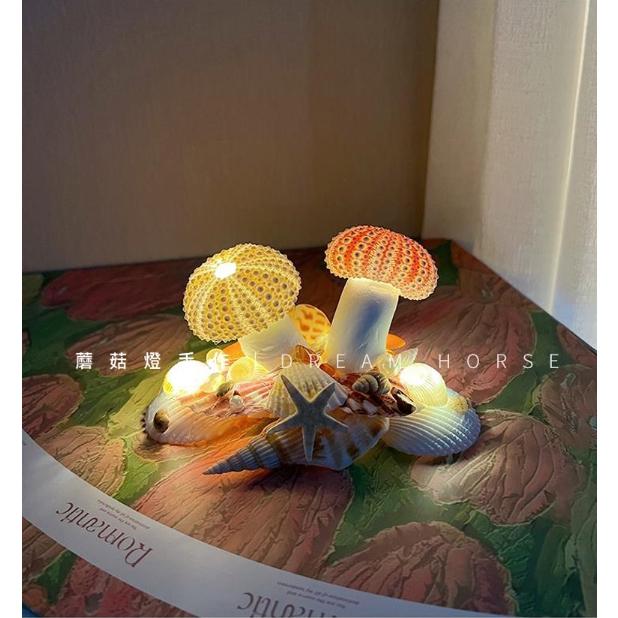 手工DIY 聖誕禮物 DIY海膽蘑菇燈 海膽貝殼小夜燈 氛圍燈(USB插電款) 材料包 交換禮物