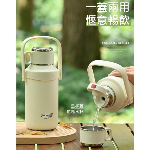 【SUPPOOKY】316手提不銹鋼保溫杯 一鍵開蓋 單手操作 內置濾網 過濾茶渣 提把輕鬆拎提 外出方便 1L大容量