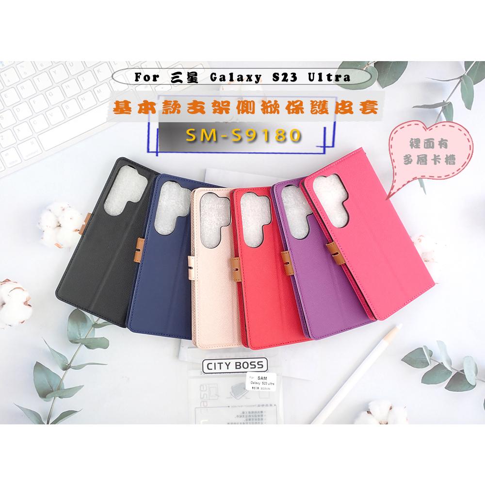 促銷 三星 S23 Ultra 手機皮套 可插卡 掀蓋保護套防摔套SM-S9180支架側掀皮套桃