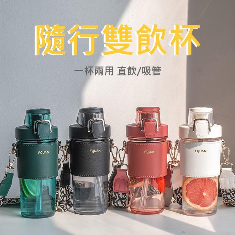 現貨 隨行雙飲杯 含背帶 水杯 直飲+吸管雙飲,揹帶水杯 洗管水杯 冷水杯 咖啡杯 隨行杯 兩用水杯 650m