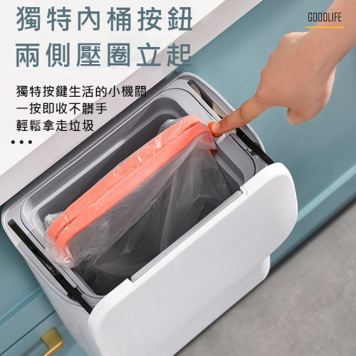 櫥櫃壁掛垃圾桶 大開口設計 掛式垃圾桶 9L廚房垃圾桶 掀蓋滑蓋雙設計 內外雙桶 附蓋 廚餘桶
