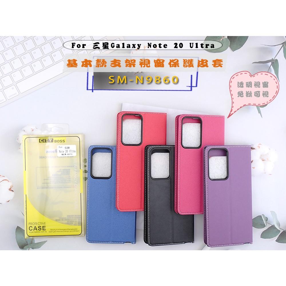 特價 三星 Note 20 Ultra 手機防摔殼 視窗掀蓋保護套防摔套SM-N9860支架側掀皮套黑