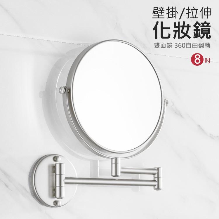 現貨🔥金屬雙面化妝鏡 衛浴壁掛式鏡面 壁掛式折疊化妝鏡 伸縮梳妝鏡 浴室壁掛拉伸鏡子 伸縮 折疊 雙面鏡放大鏡