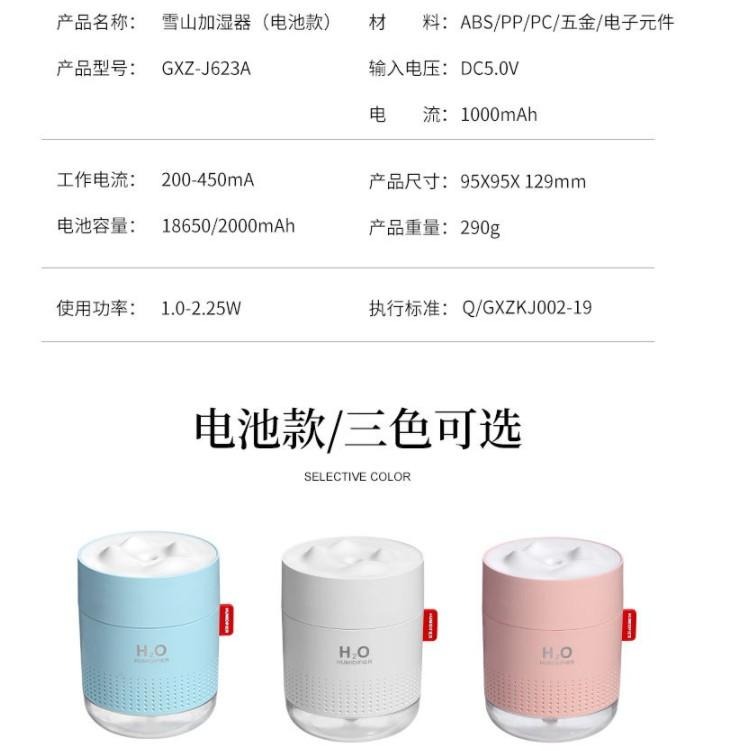 現貨 快速出貨 雪山加濕器 無線加濕器 USB夜燈 (450ml) 長亮 呼吸 暖光 小夜燈 氛圍燈 精油香熏機