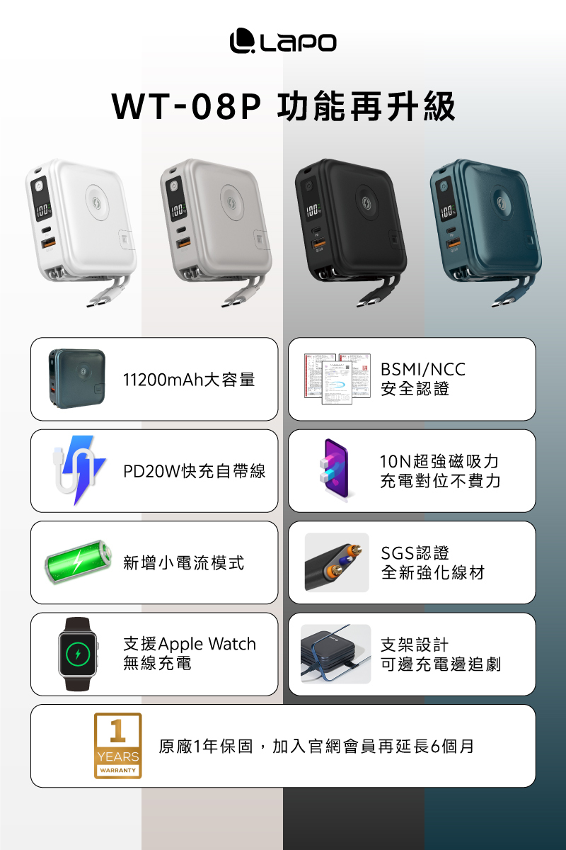 【LaPO】WT-08P系列 全功能 11200mAh 無線充電行動電源(3.5代進化款)