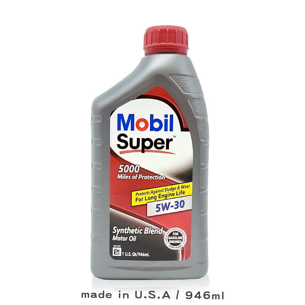 Mobil 美孚 機油|Super 5000 5W30|946ml|合成|API SP|保護引擎|美國製造|庫柏蒂諾