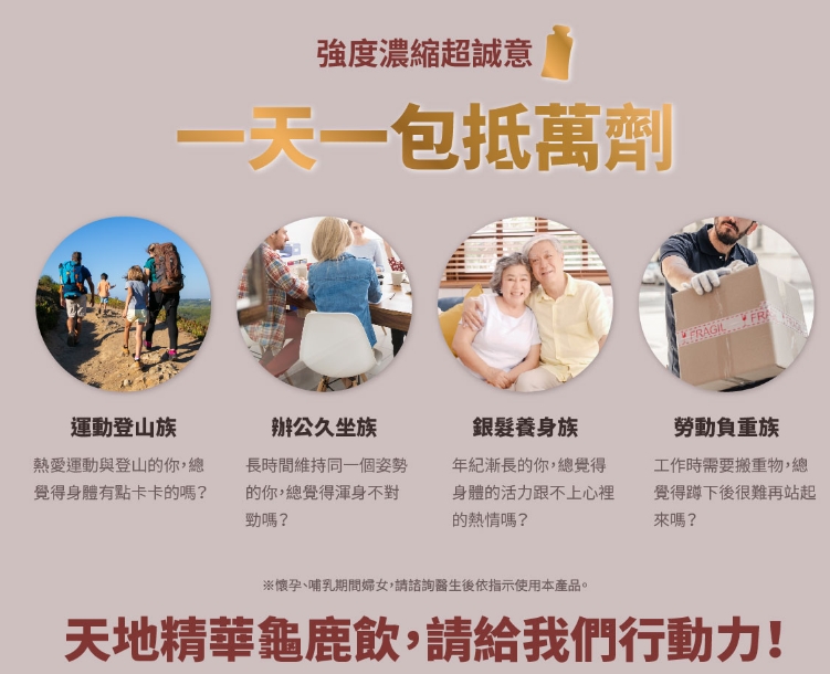 💥有別於傳統的膠狀和丸狀,天地精華龜鹿飲以萃取的方式,將六大營養素濃縮於隨身包裡,分子小吸收快,攜帶更方便