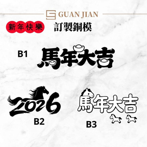 馬年祝賀語  2026 馬年銅模|新年祝賀語烙印|食品烙印/手作燙金|新年限定 商用厚銅模 2026年 馬年 設計字形銅模, 適合食品烙印、燙金、烙印、皮革與手作創作使用。 Happy New Year,讓作品多一份快樂的儀式感。 不論是食品或手作產品,都能輕鬆加入新年的祝福。 https://s-cf-tw.shopeesz.com/file/tw-11134208-81ztf-mi9vgq1tesco35 https://s-cf-tw.shopeesz.com/file/tw-11134208-81zti-mi9vgq1tdds85b