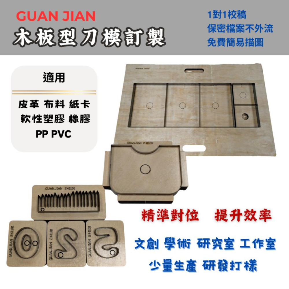 木板厚度有:18mm 15mm 12mm 刀片高度有:23.8mm 30mm 35mm 40mm 50mm 可以用手壓台來裁切 如時使用㪣的 請用膠槌或是木槌 再搭配pp膠板 確認實圖報式經報價後,下標正確數量 例:實際金額:800元,請下標80個*10元=800個數量 訂製雷射刀模——專業精準,適用多種產業 刀模種類繁多,從手作到晶圓廠皆有應用。 我們根據您的產業需求和預算,推薦最適合的刀模,確保最佳切割效果。 ⚠️ 本產品為雷射刀模,非鐵刀模或紙藝機專用刀模。 適用產業與材料 雷射刀模廣泛應用於 紙張、皮革、橡膠、塑膠、泡棉、食品及薄件材料,適合壓切多種材質。 報價與製作 雙面刃刀模與美工刀片類似,刀鋒極薄,屬於消耗品 通用型雙面刃樣式 95% 產業使用這類刀片。 如需單面刃樣式特殊產業使用,需另外聊聊說明 產品報價以雙面刃為主 若有需求或疑問,歡迎聯繫我們! 訂製刀模或銅模需提供 向量檔案,格式包含:AI(Adobe Illustrator)、PDF 或 SVG。 若無向量檔,請提供 高解析度的白底黑圖,或 手繪圖掃描成 PDF 檔案請傳:2018guanjian@gmail.com ------------------------------------------------------------------------ 每周一、三、五假期前結單一次 7-10工作天寄出 ***合版製作,沒辦法改急單*** 訂購請先轉帳付款或刷卡 再超商取貨,黑貓取貨 ------------------------------------------------------------------------ 使用注意事項: ***刀模適用很多材質,但是實際能不能使用要看設備和方式*** ***不是像美工刀尖切割那麼容易,要有研發實驗的心態*** 刀模就像美工刀一樣為消耗品,不可以鐵鎚直接敲打刀模 請搭配適合壓刀模的模具使用 使用後或保存請上油保養 裁斷參考: 一般手壓台壓可以一次裁切尺寸大約: 植鞣皮革(硬皮革)3.5mm厚,20mm圓形刀模(小型手壓台) 植鞣皮革(硬皮革)3.5mm厚,45mm圓形刀模(中型手壓台) 植鞣皮革(硬皮革)3.5mm厚,85mm圓形刀模(MT1手壓台搭配中置裁斷手把款式) 植鞣皮革(硬皮革)3.5mm厚,150mm圓形刀模(MT2.MT3手壓台搭配中置裁斷手把款式) (更大面積可分段裁切) 紙張,布料有纖維質比皮革難切斷(需要有密技) 更大更厚尺寸請採購裁斷機使用 不同材質有不同裁切技巧(學有專精、術有專攻) 這裡僅提供工具使用,如果知道會盡量解說 https://s-cf-tw.shopeesz.com/file/tw-11134208-7rbkb-m793joq9hiki1e https://s-cf-tw.shopeesz.com/file/tw-11134208-7rbk6-m793joq9ix4y1b https://s-cf-tw.shopeesz.com/file/tw-11134208-7rbk4-m793joq9kbpe8e https://s-cf-tw.shopeesz.com/file/tw-11134208-7rbk6-mb27qg0wiswm54 https://s-cf-tw.shopeesz.com/file/tw-11134208-7rbk9-mb27qg0wk7h260 https://s-cf-tw.shopeesz.com/file/tw-11134208-7rbkd-mb27qg0wlm1ia9 https://s-cf-tw.shopeesz.com/file/tw-11134208-7ra0k-mb3kay9s8fyuc6 https://s-cf-tw.shopeesz.com/file/tw-11134208-81zth-mjgfllf580zq04