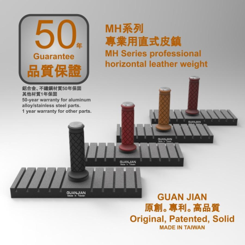 全新原創MH系列 多功能模組化手把系統 --------------------------------------------- 專業多功能直式皮鎮 完美重量比例 穩重、不過重、不壓傷物件 大型手把可安穩移動 溝槽可放塗上邊油待乾燥皮件 長物件可環繞式排列 適合專業工作室、教學單位 大尺寸皮革全展開使用