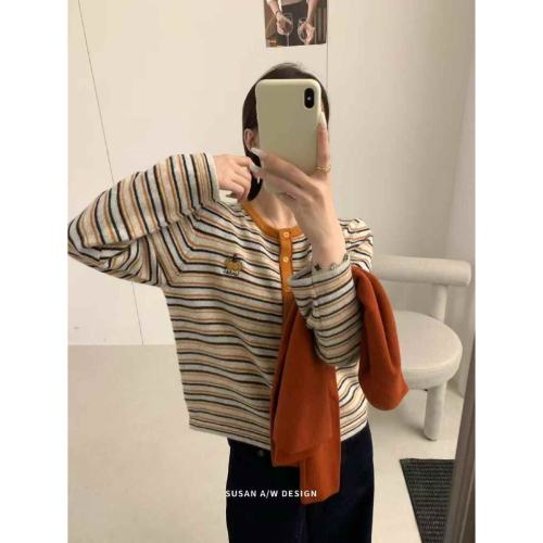 【유나】平價區CN000191128-條紋南瓜🎃針織衫
