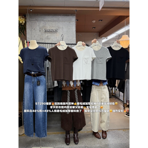 【유나】平價區CN00090915-內搭磨毛絨加厚口袋短袖T