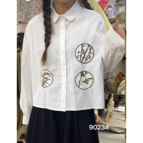 【KQ】平價區CN0004-竹葉圓圈刺繡襯衣