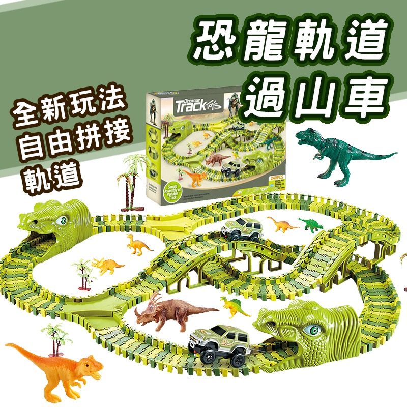 兒童恐龍軌道車(台灣現貨) 小汽車DIY恐龍拚圖場景玩具男孩3-6嵗多功能 diy軌道 電動車 恐龍軌道車 電動軌道車