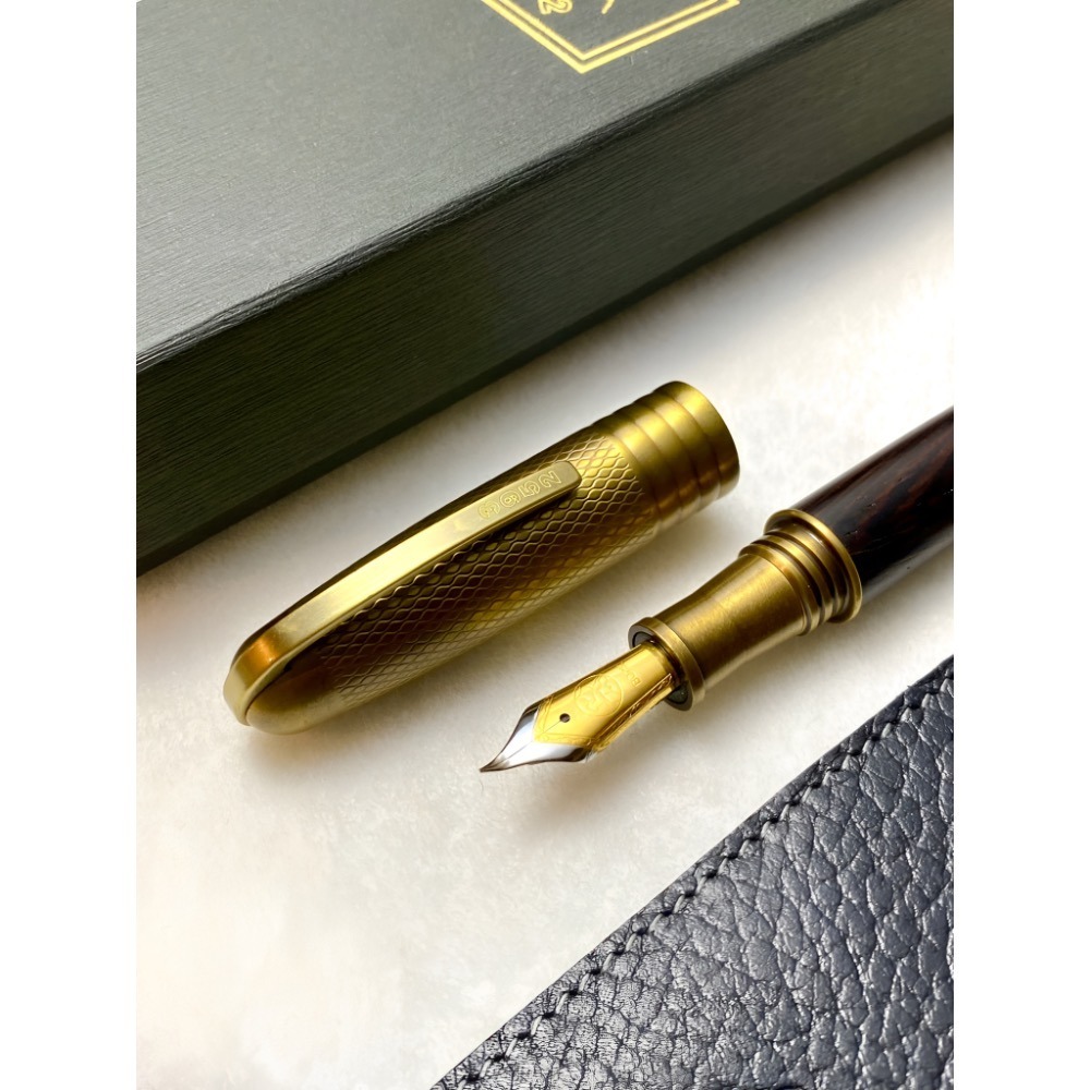 3952老山羊-葛瑪蘭 鐵刀木 古黃銅 雙色書法鋼尖鋼筆