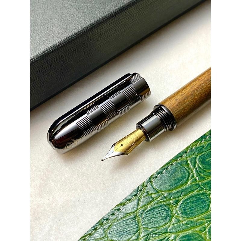 CEO:3952老山羊-經典外銷長青筆款。南美綠檀木原木筆身搭配棋盤格紋路雕刻氣密式筆蓋,筆尖使用德國山羊BOCK#250(#6)雙色鋼尖(提供四種筆尖幅度可供選擇)。