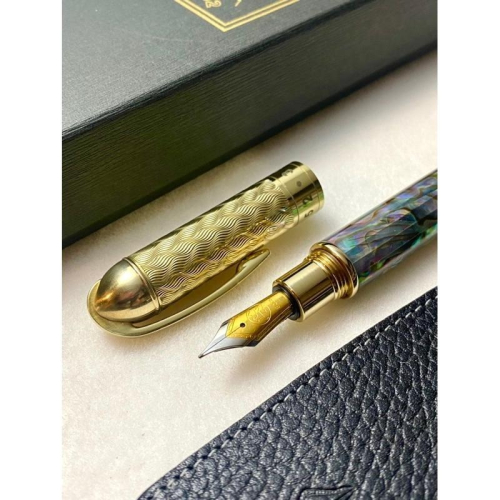 CHAIRMAN:3952老山羊-經典外銷長青筆款。採用手工製鮑魚貝殼材質再一片一片再組合拼接,盡其可能接續每片的紋路。貝殼片都有天然的紋路及其天然的色彩,人工拋光後包覆在銅管上,再上一層厚厚的透明漆,可看得出接線但摸不到接線。天然紋路、五彩繽紛、絢麗奪目,美不勝收(自然紋路,優質隨機出貨)。原黃銅配件搭配(原銅未電鍍),3952品牌經典LOGO及火焰紋路雕刻氣密式筆蓋。