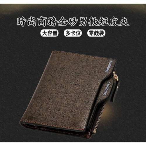 ((台灣現貨))時尚商務男款短皮夾 拉鍊零錢包 男款錢包 多功能錢包