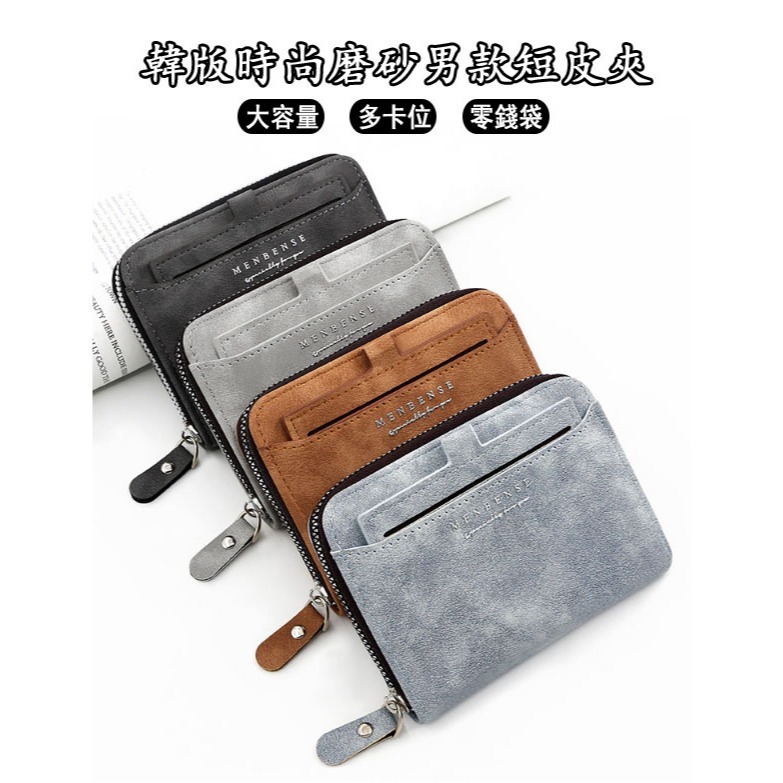 ((台灣現貨))韓版時尚磨砂男款短皮夾 男士商務拉鍊錢包 抽卡純色皮夾 短款皮包