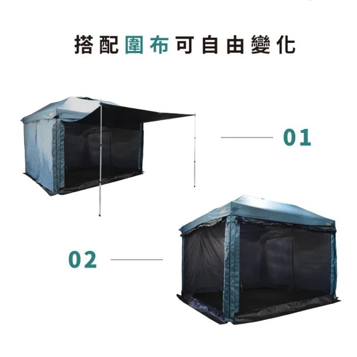 下方綁繩可搭配營柱變化為前簷帳。