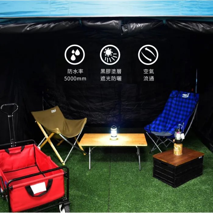 • 邊布採雙層設計,外層與客廳帳本體一致的抗撕裂布料,內層則為網紗設計。