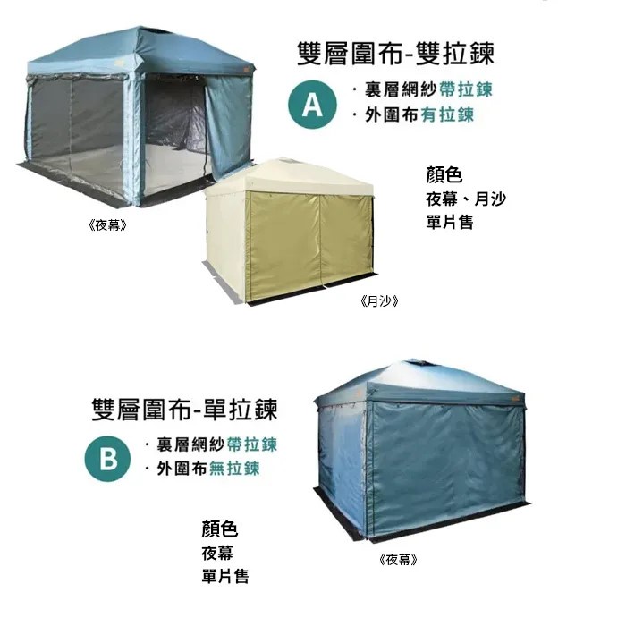 先前已購買過夜幕款的雙用圍布、連接布,若不確定要配合第幾代圍布,可以請拍拉鍊照片與客服聯繫,幫您確認。