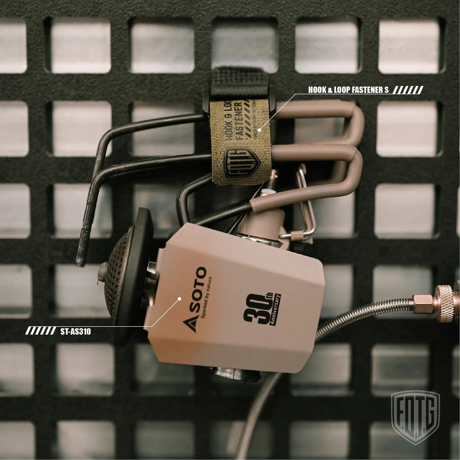 搭配置物板,將燈、瓦斯罐、蜘蛛爐......各種小物吊掛收納展示超簡單