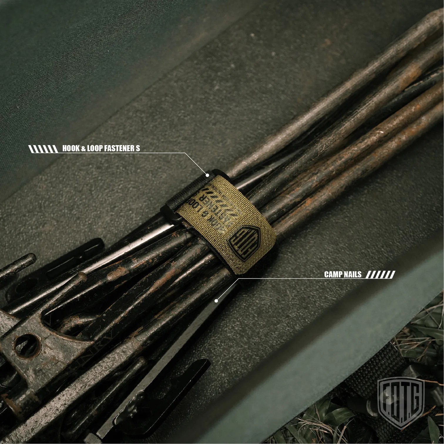 散亂的營釘、營柱綑綁後,不再怕晃動時摩擦刮傷