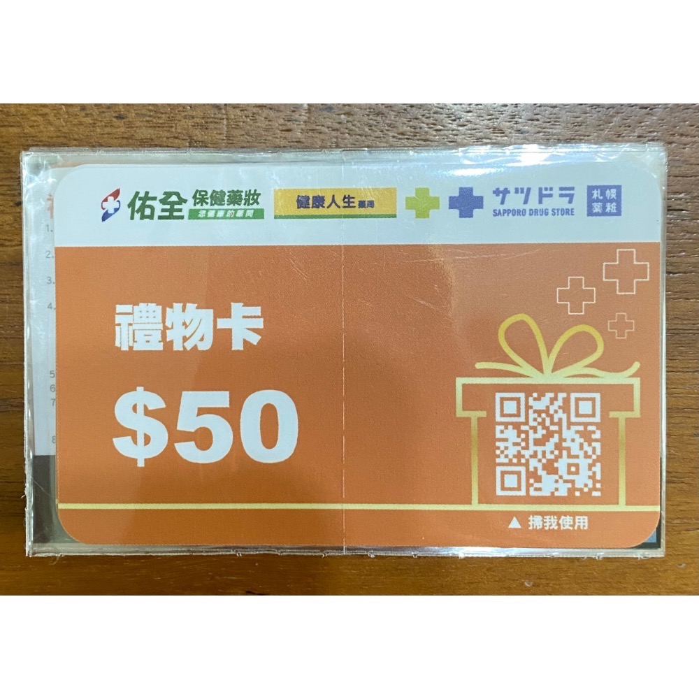 - 本禮物卡適用台灣地區佑全保健藥妝/健康人生藥局/札幌藥妝門市使用,支付屬銷售時應開立統一發票之商品/服務。