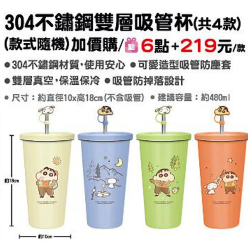 蠟筆小新 春日遊新趣 304不銹鋼雙層吸管杯