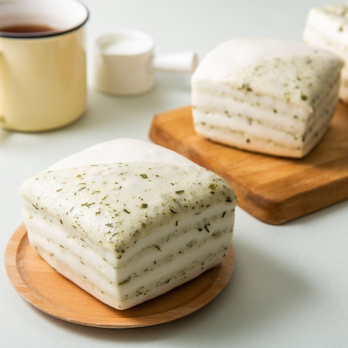 蔥末揉入麵糰中,搭配牛奶饅頭製作出千層造型