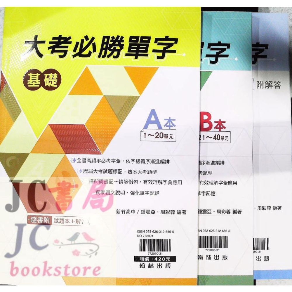 【JC書局】翰林高中 贏家英文 大考必勝單字 基礎 AB本+試題本 合售【JC書局】