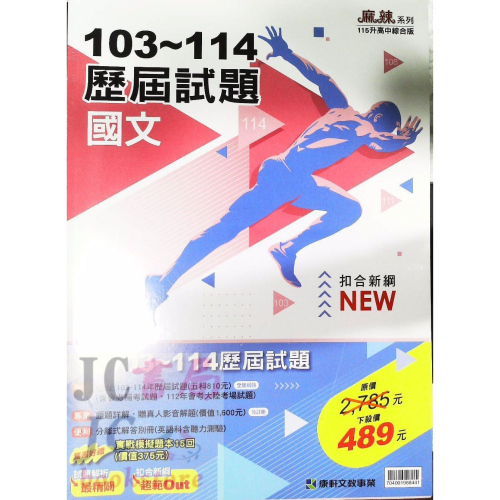 【JC書局】康軒國中 115年 會考 歷屆試題 103~114年 歷屆試題 5科 套書(全套) 國文 英語 數學