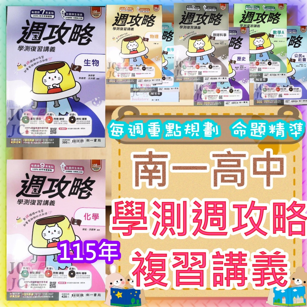 【JC書局】南一高中 115年 學測週攻略 複習講義 數學A 數學B 化學 生物 地科 地球科學 物理 歷史 公民