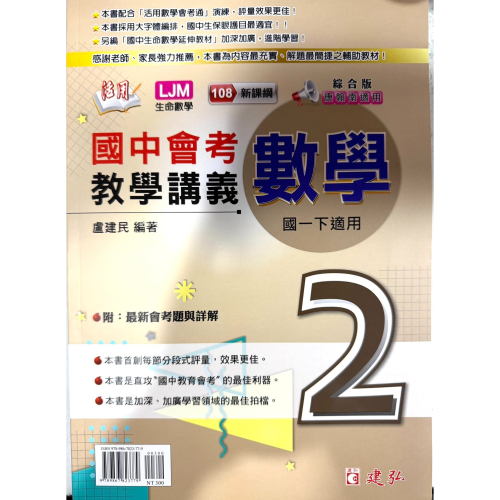 【JC書局】建宏國中 114下學期 2026年 活用 (綜合版)數學 教學講義 (2) 國1下 參考書【JC書局】