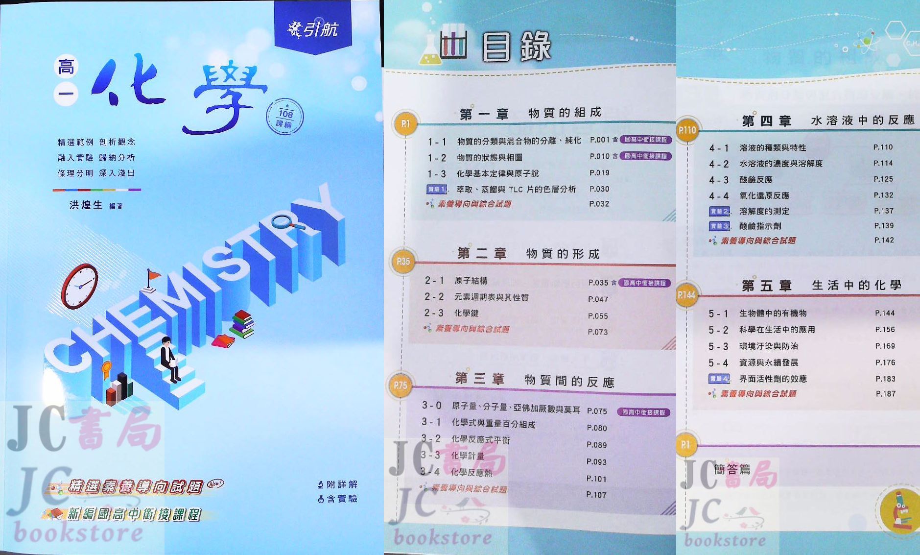 化學 全-本書根據108課綱為編寫方向,重點整理及例題演練,涵蓋《國高中銜接課程》,也將實驗課程納入每一章節中,另加入素養導向試題,引導同學正確觀念,更能駕輕就熟的學習