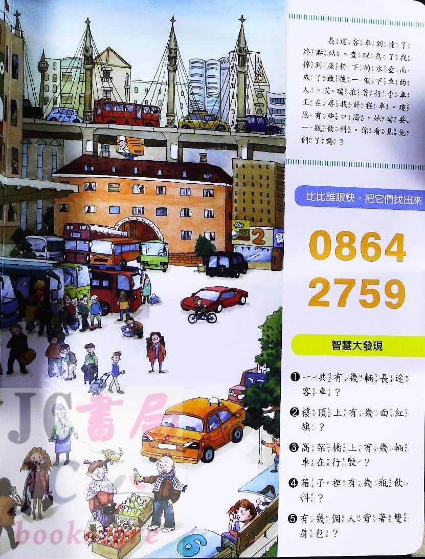 透過尋寶認識英文字母或名詞,以及將數學計算概念與人物觀察融入有趣好玩的遊戲,使這本超級豐富有趣的圖畫書刺激孩子全腦開發,讓孩子越玩越聰明。