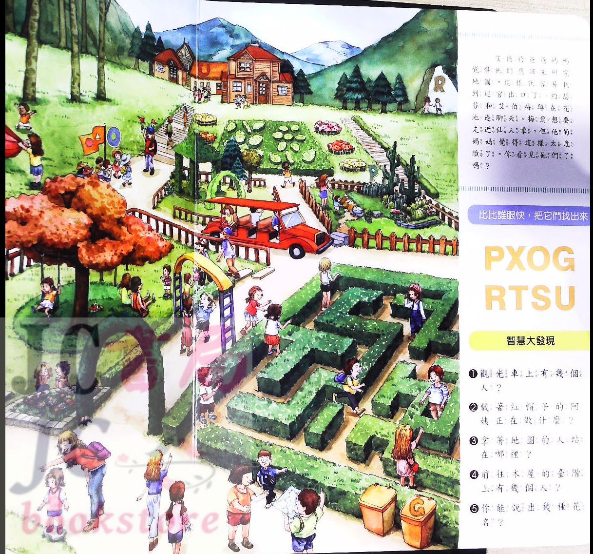 讓孩子藉由圖像人物所處的場景,說出人物的位置,增進孩子的空間辨識感。