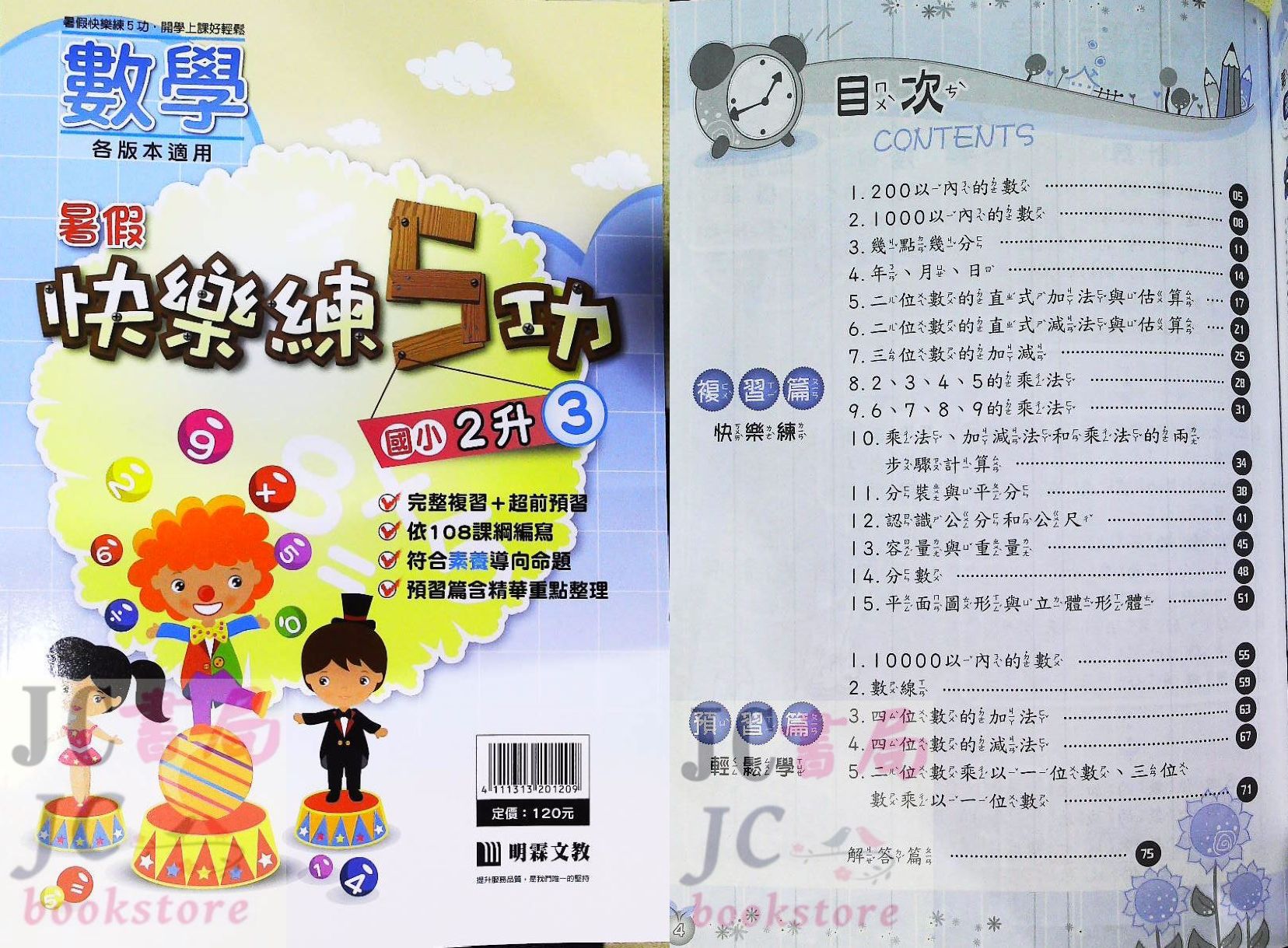【JC書局】明霖國小 (暑假) 練5功 數學 (2升3) 暑期教材 先修