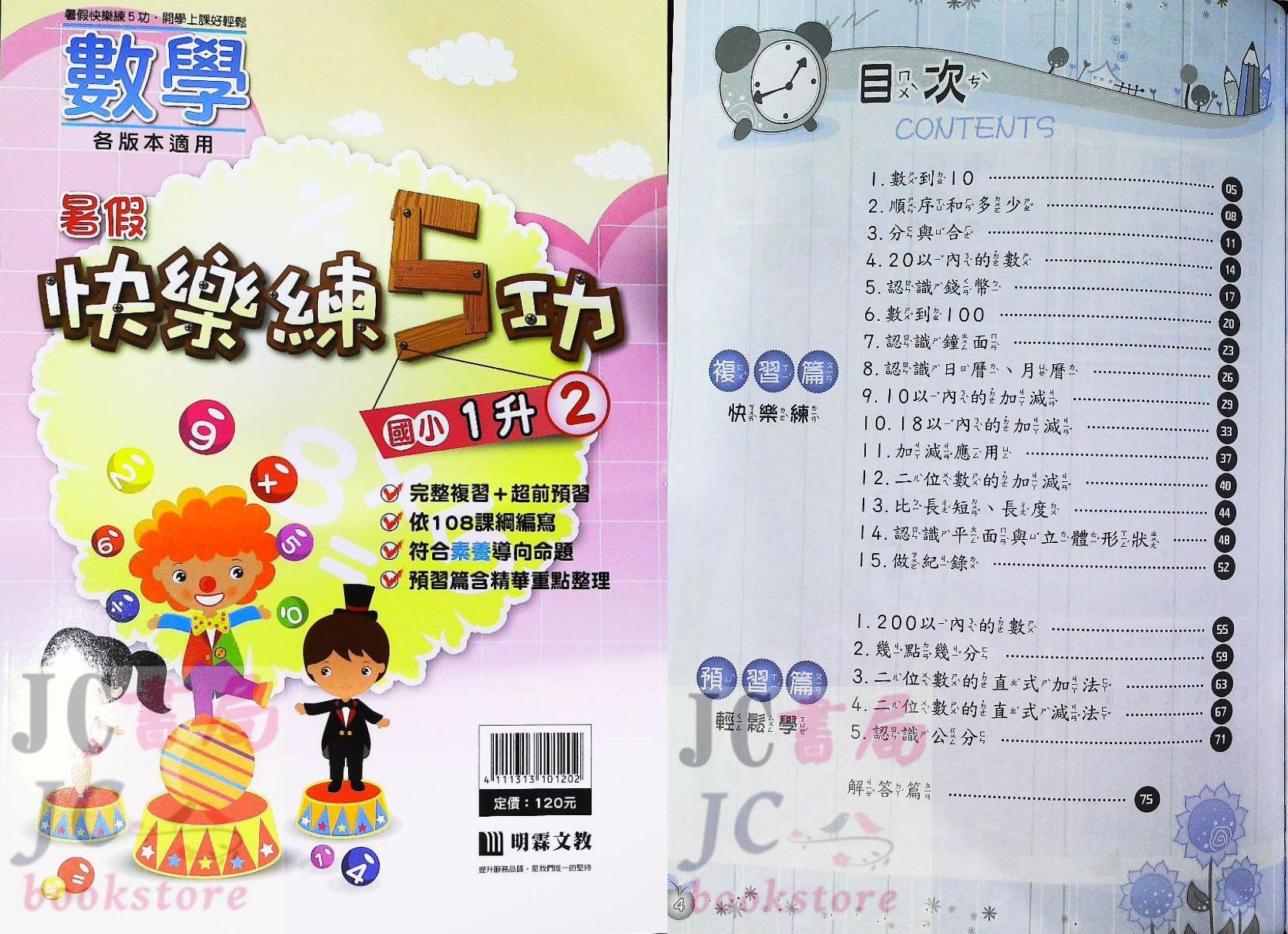 【JC書局】明霖國小 (暑假) 練5功 數學 (1升2) 暑期教材 先修