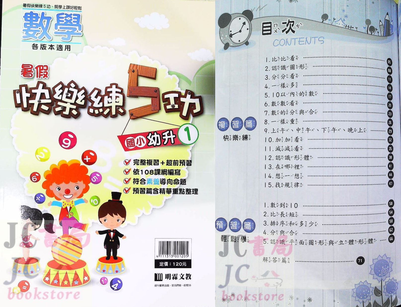 【JC書局】明霖國小 (暑假) 練5功 數學 (升小1) 暑期教材 先修