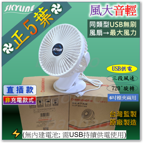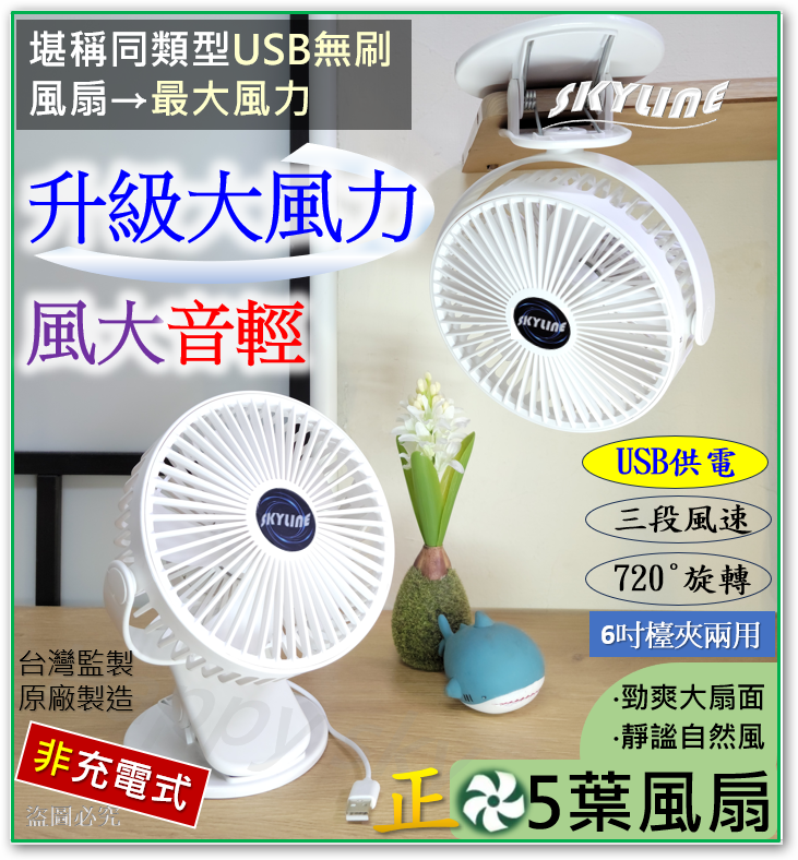 商品名稱:檯夾2用USB風扇(6.2吋)