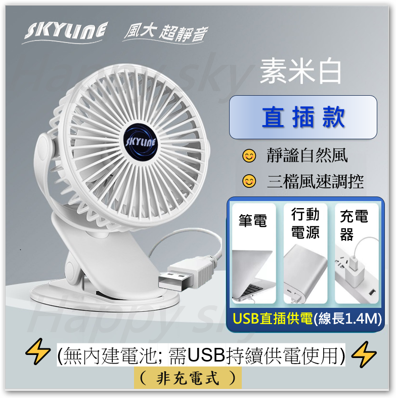 ✅6.2吋檯夾2用風扇 (無內建電池; 需USB持續供電使用)充電款式⛔️