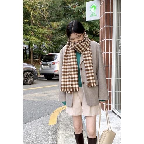 現貨💖猫日屋💖 正韓🇰🇷 純羊毛格紋甜美圍巾