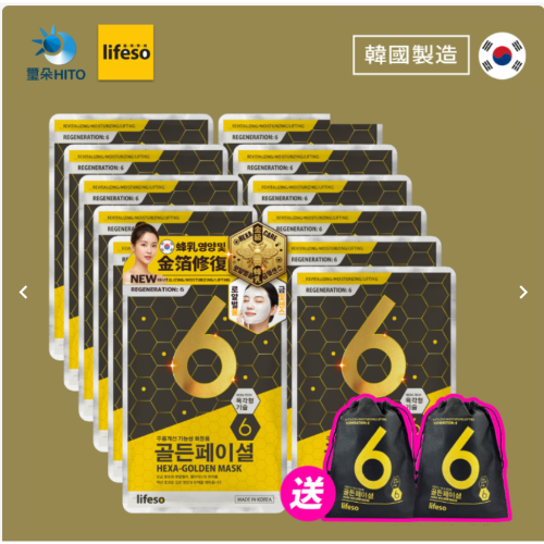 Lifeso 韓國空運6D蜂王乳黃金超導面膜(25mlx6片+品牌袋) 2組/箱