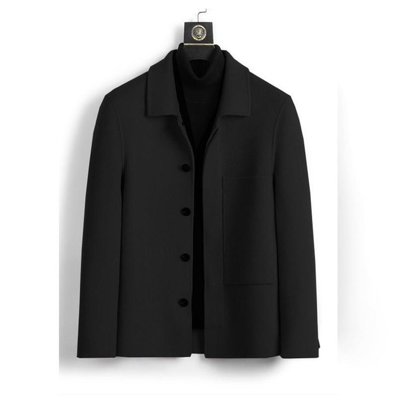 2023秋冬時尚外套男士短翻領雙面毛呢外套韓版外套百搭潮流外套