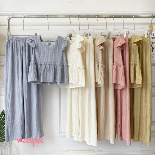 現貨+預購🌟免運🌟 氣質飛袖上衣+高腰顯瘦寬褲 A1304 #Kayla.girl #少女愷拉